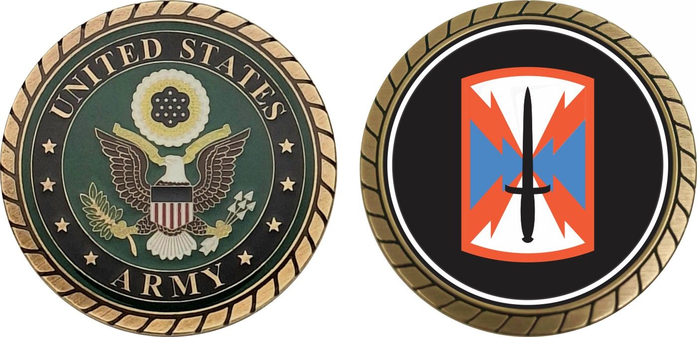 This 1 3/4” Army 1101st Signal Brigade Patch Challenge Coin is proudly offered by Militarybest. This Officially Licensed Army coin has beautiful enamel finish on one side and an organized crisp clean design on the opposite side.