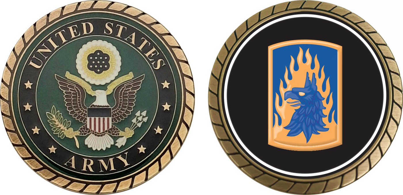 This 1 3/4” Army 12th Aviation Brigade patch Challenge Coin is proudly offered by Militarybest. This Officially Licensed Army coin has beautiful enamel finish on one side and an organized crisp clean design on the opposite side.