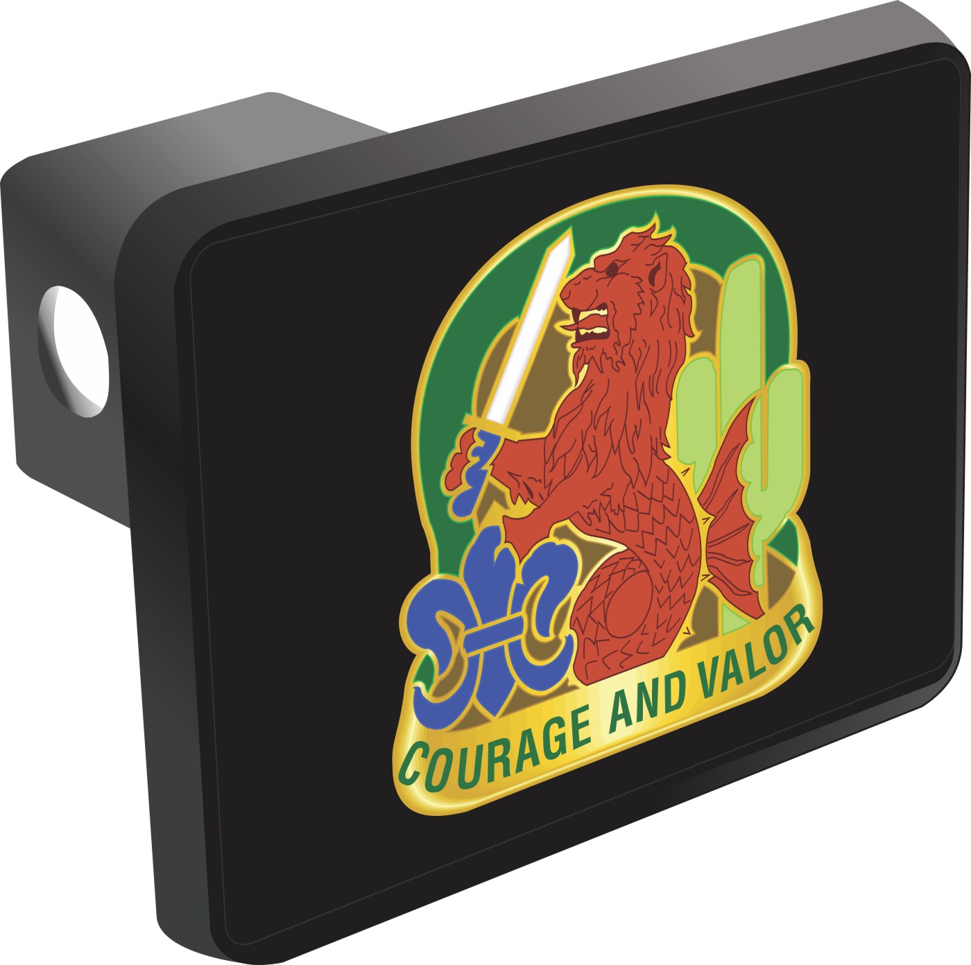This Army 163rd Armored Brigade Unit Crest Hitch Cover is proudly Made in the USA. Each Hitch Cover's face plate measures 4.7" x 3.4" and is applied on a black heavy duty injection molded plastic 2" hitch cover; link pin not included. The face plate of the hitch cover is sublimation printed to provide a beautiful glossy finish sure to catch the eye. This hitch cover would make a wonderful addition to your truck or other vehicle.A percentage of the sale of each MilitaryBest item is forwarded to the licensing departments of each respective branch of service in support of the MWR (Morale, Welfare, & Recreation) program. These payments are made by either ALL4U LLC or the wholesaler from where the item originated. Our team thanks you for your service and your support of these programs.