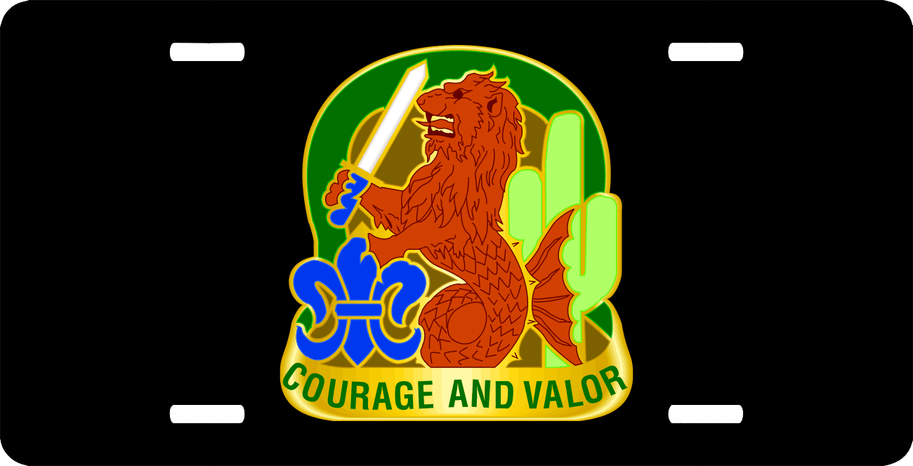 This Army 163rd Armored Brigade Unit Crest License Plate is made from heavy gauge aluminum and has a baked enamel finish to last for many years of use. Each plate measures 5 15/16" x 11 15/16". This license plate would make a wonderful addition to your collection or a great gift.