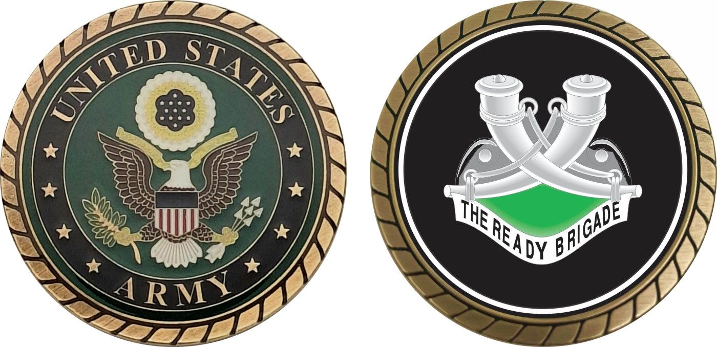 This 1 3/4” Army 187th Infantry Brigade Unit Crest Challenge Coin is proudly offered by Militarybest. This Officially Licensed Army coin has beautiful enamel finish on one side and an organized crisp clean design on the opposite side.