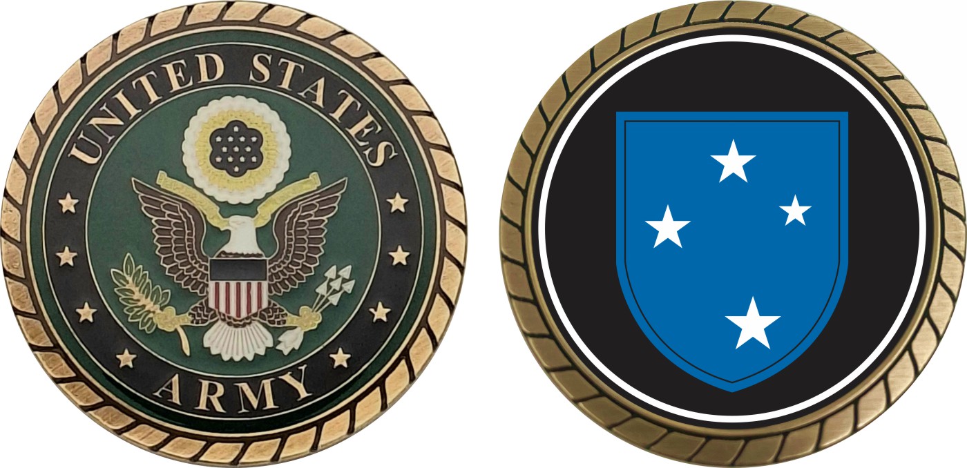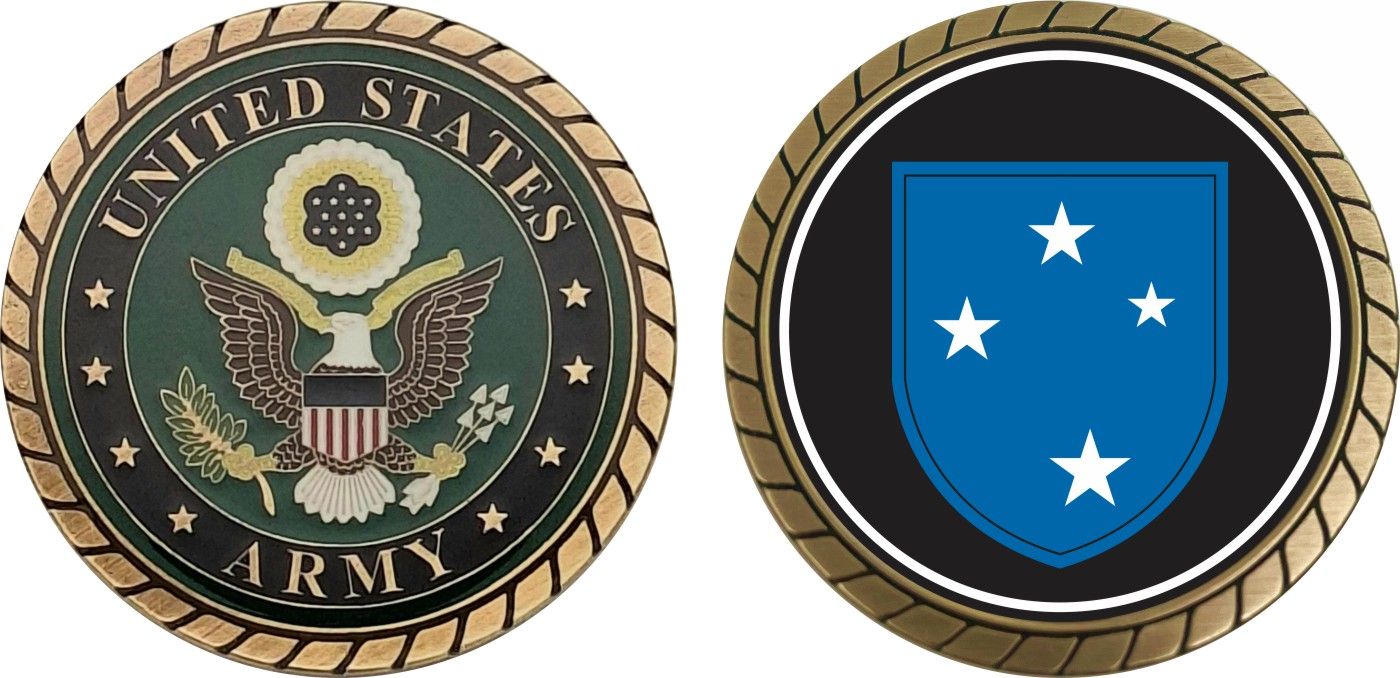 This 1 3/4” Army 23rd Infantry Division Challenge Coin is proudly offered by Militarybest. This Officially Licensed Army coin has beautiful enamel finish on one side and an organized crisp clean design on the opposite side.