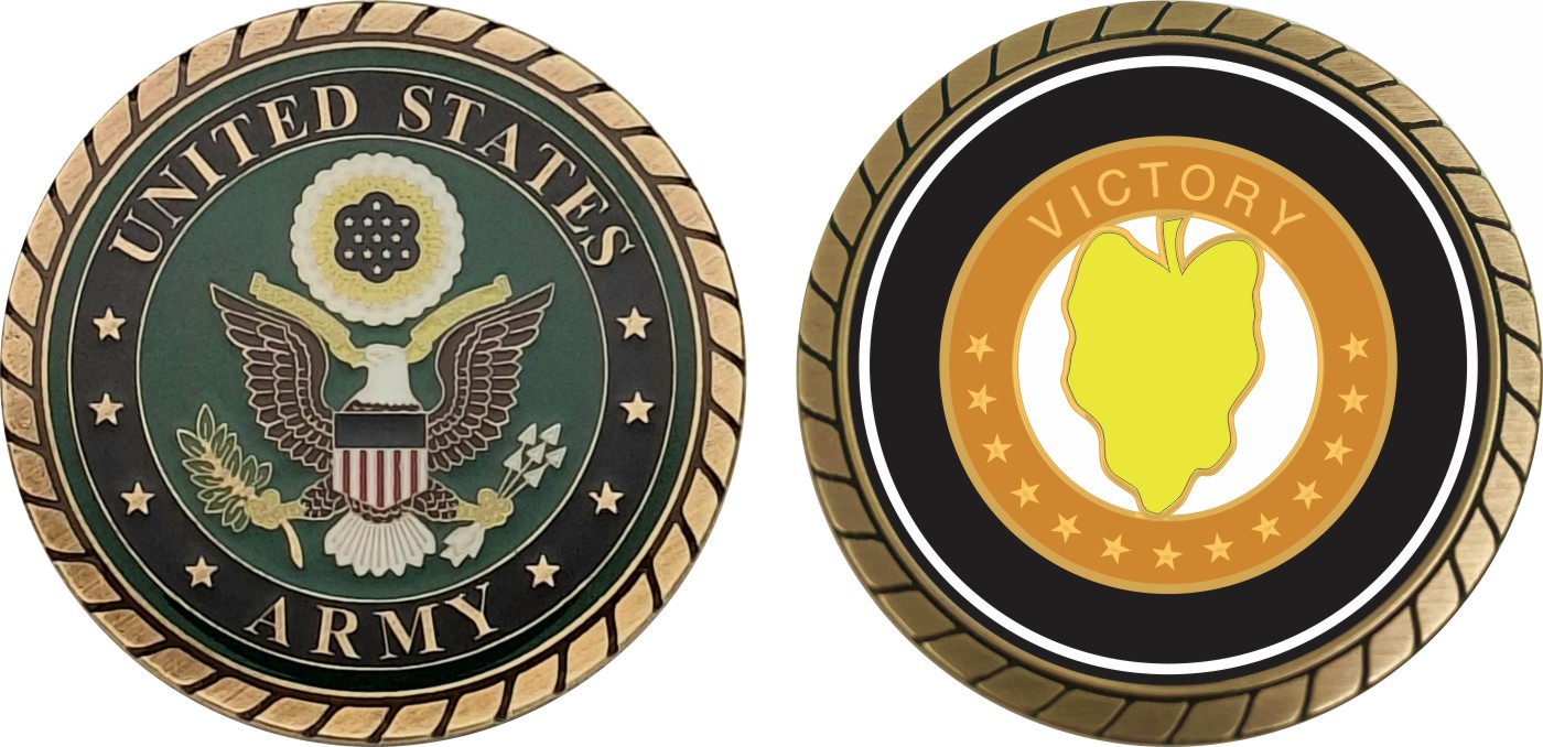 This 1 3/4” Army 24th Mech Infantry Division Unit Crest Challenge Coin is proudly offered by Militarybest. This Officially Licensed Army coin has beautiful enamel finish on one side and an organized crisp clean design on the opposite side.