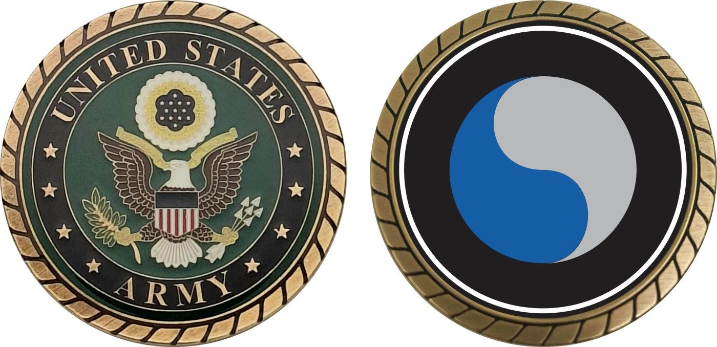 This 1 3/4” Army 29th Infantry Division Challenge Coin is proudly offered by Militarybest. This Officially Licensed Army coin has beautiful enamel finish on one side and an organized crisp clean design on the opposite side.