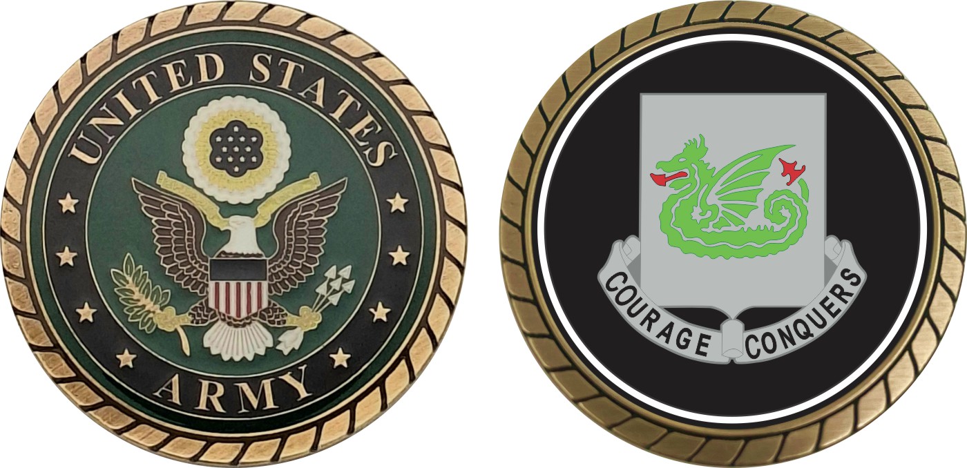 This 1 3/4” Army 37th Armor Regiment Challenge Coin is proudly offered by Militarybest. This Officially Licensed Army coin has beautiful enamel finish on one side and an organized crisp clean design on the opposite side.