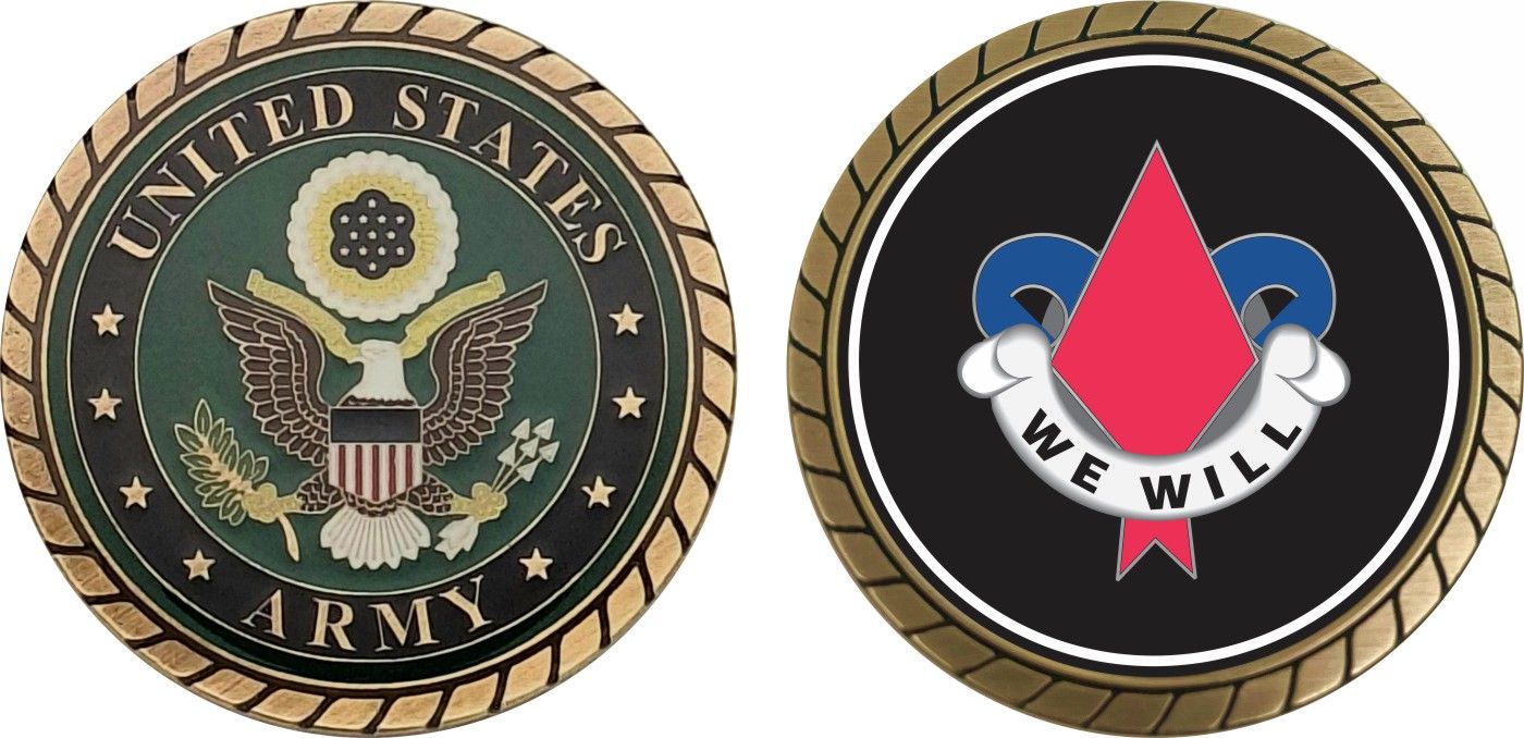 This 1 3/4” Army 5th Infantry Division Unit Crest Challenge Coin is proudly offered by Militarybest. This Officially Licensed Army coin has beautiful enamel finish on one side and an organized crisp clean design on the opposite side.