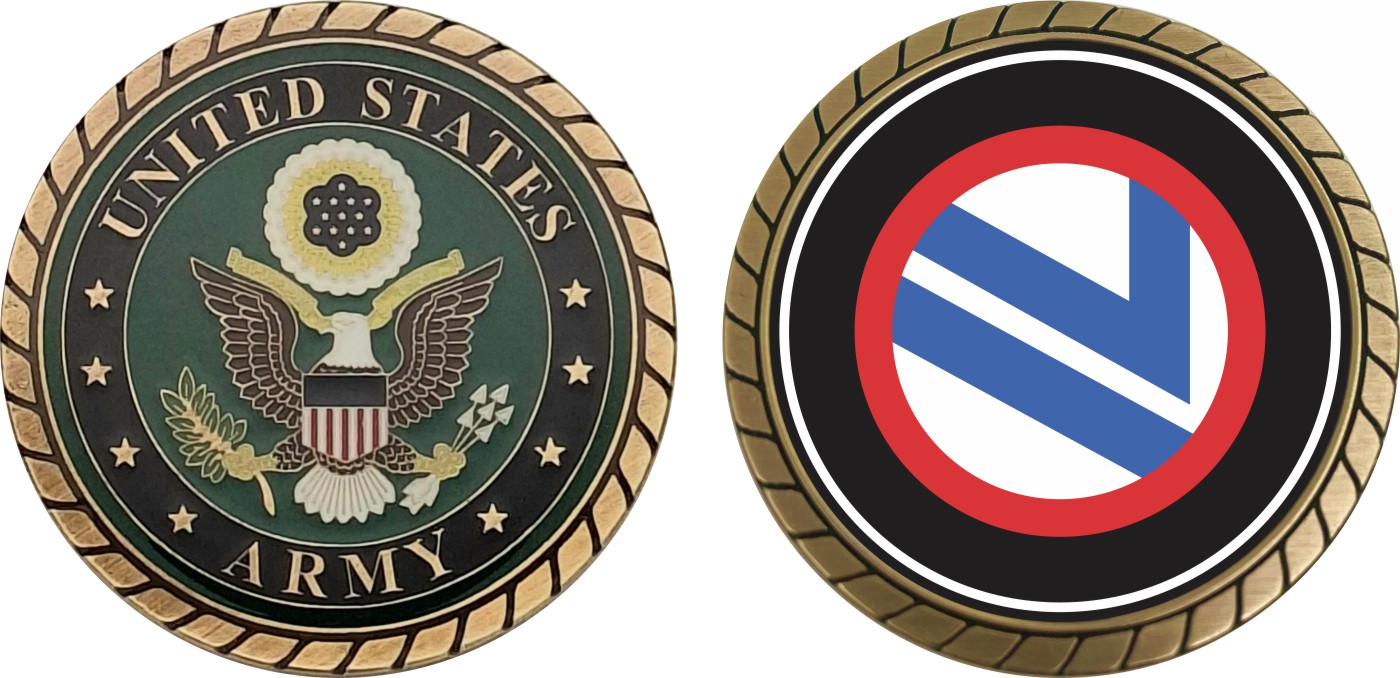 This 1 3/4” Army 71st Training Division Challenge Coin is proudly offered by Militarybest. This Officially Licensed Army coin has beautiful enamel finish on one side and an organized crisp clean design on the opposite side.