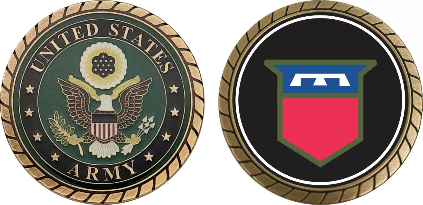 This 1 3/4” Army 76th Training Division Challenge Coin is proudly offered by Militarybest. This Officially Licensed Army coin has beautiful enamel finish on one side and an organized crisp clean design on the opposite side.