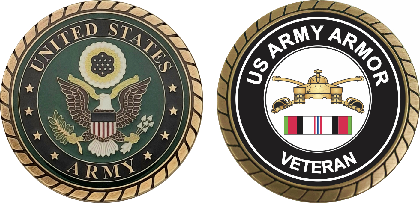 This 1 3/4” Army Armor Afghanistan Challenge Coin is proudly offered by MilitaryBest. This Officially Licensed Army coin has beautiful enamel finish on one side and an organized crisp clean Army Armor Afghanistan design on the opposite side.