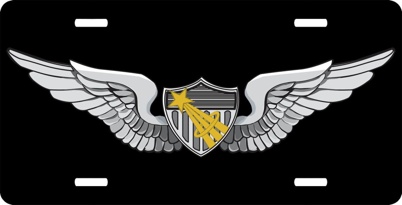 This Army Astronaut Wings License Plate is made from heavy gauge aluminum and has a baked enamel finish to last for many years of use. Each plate measures 5 15/16" x 11 15/16". This license plate would make a wonderful addition to your collection or a great gift.