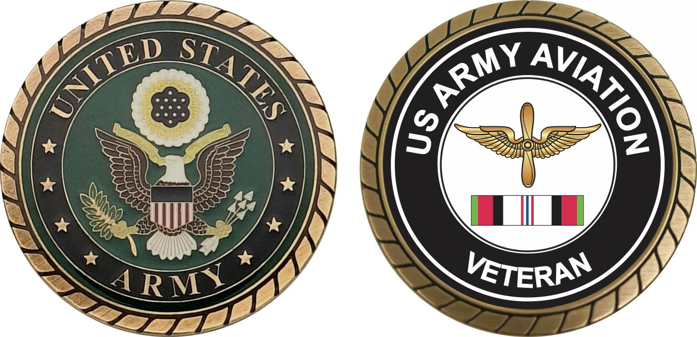 This 1 3/4” Army Aviation Afghanistan Challenge Coin is proudly offered by MilitaryBest. This Officially Licensed Army coin has beautiful enamel finish on one side and an organized crisp clean Army Aviation Afghanistan design on the opposite side.