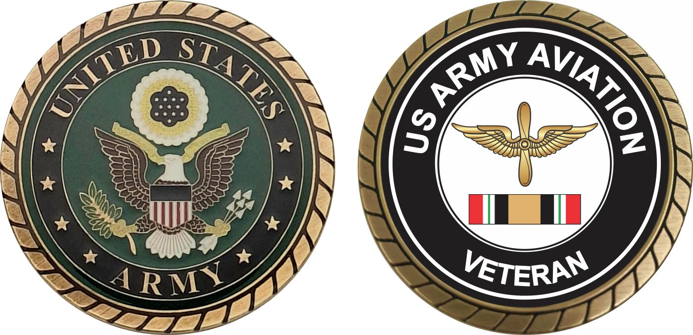 This 1 3/4” Army Aviation Iraq Veteran Challenge Coin is proudly offered by MilitaryBest. This Officially Licensed Army coin has beautiful enamel finish on one side and an organized crisp clean Army Aviation Iraq Veteran design on the opposite side.