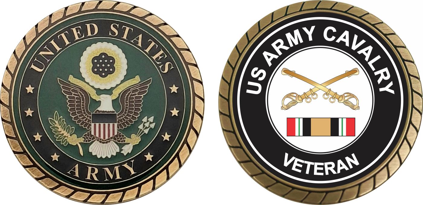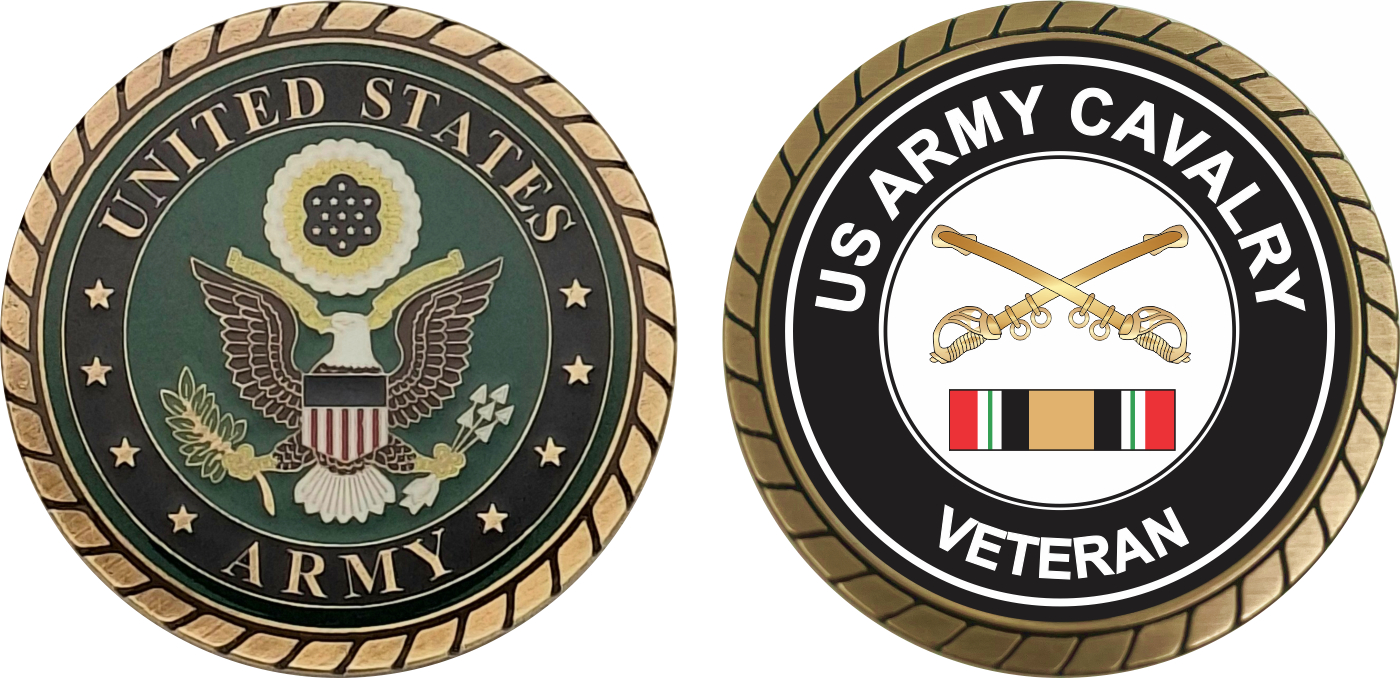This 1 3/4” Army Cavalry Corps Iraq Veteran Challenge Coin is proudly offered by MilitaryBest. This Officially Licensed Army coin has beautiful enamel finish on one side and an organized crisp clean Army Cavalry Corps Iraq Veteran design on the opposite side.