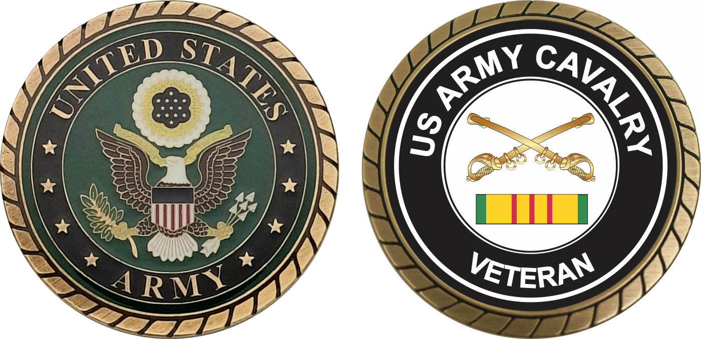 This 1 3/4” Army Cavalry Vietnam Veteran Challenge Coin is proudly offered by MilitaryBest. This Officially Licensed Army coin has beautiful enamel finish on one side and an organized crisp clean Army Cavalry Vietnam Veteran design on the opposite side.