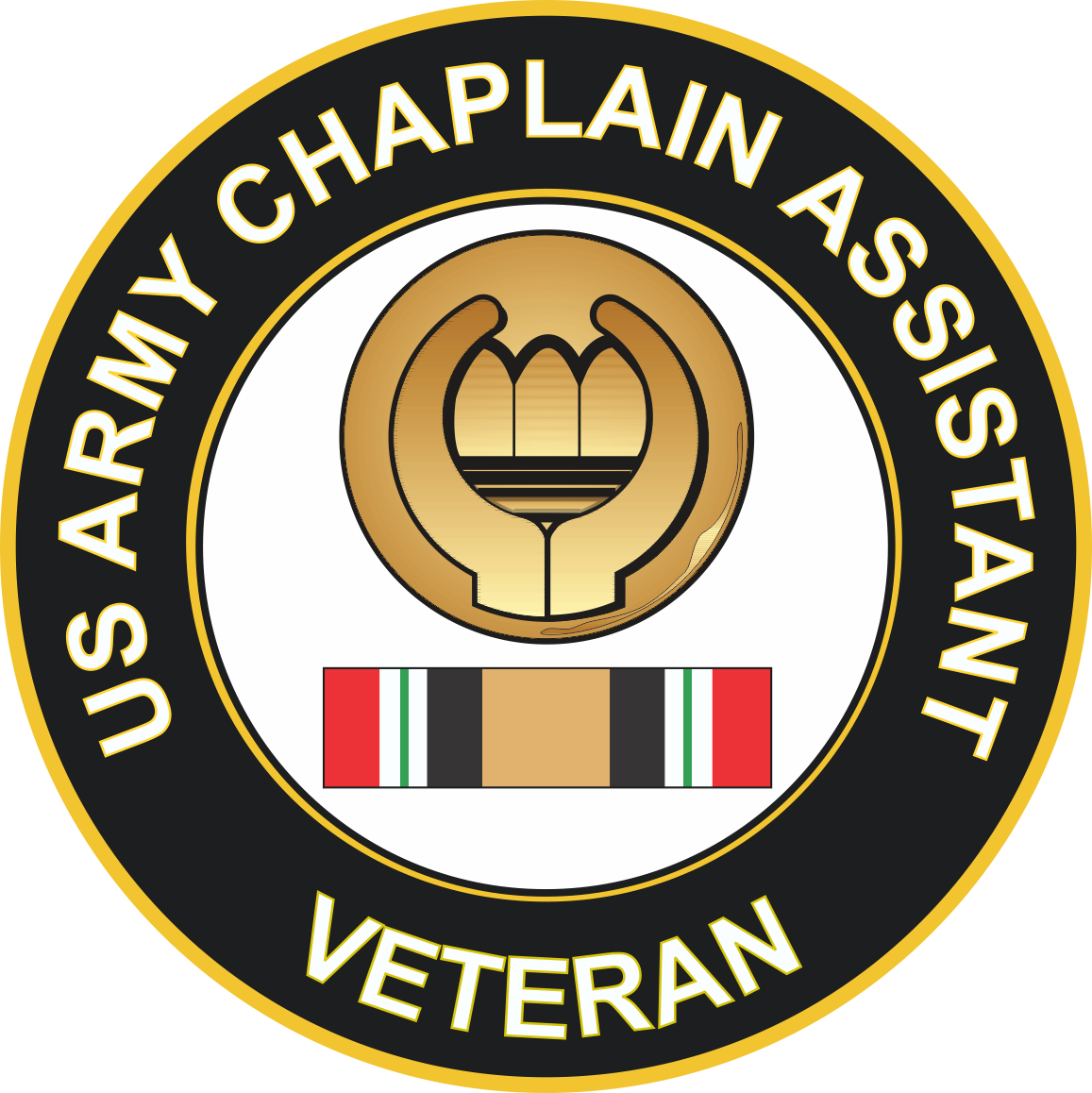 This Army Chaplain Assistant Iraq Veteran Decal is made in the USA at our facilities in Scottsboro, Alabama. Each Army Chaplain Assistant Iraq Veteran Decal is made using the finest ink and vinyl available and all are made for outside applications. We have been producing high quality Military Decals for over 10 years and we guarantee the quality of each one.Choose from several sizes, and click the 'ADD TO CART' button. For bulk pricing for custom and wholesale decals click here: Custom & Wholesale Decals!