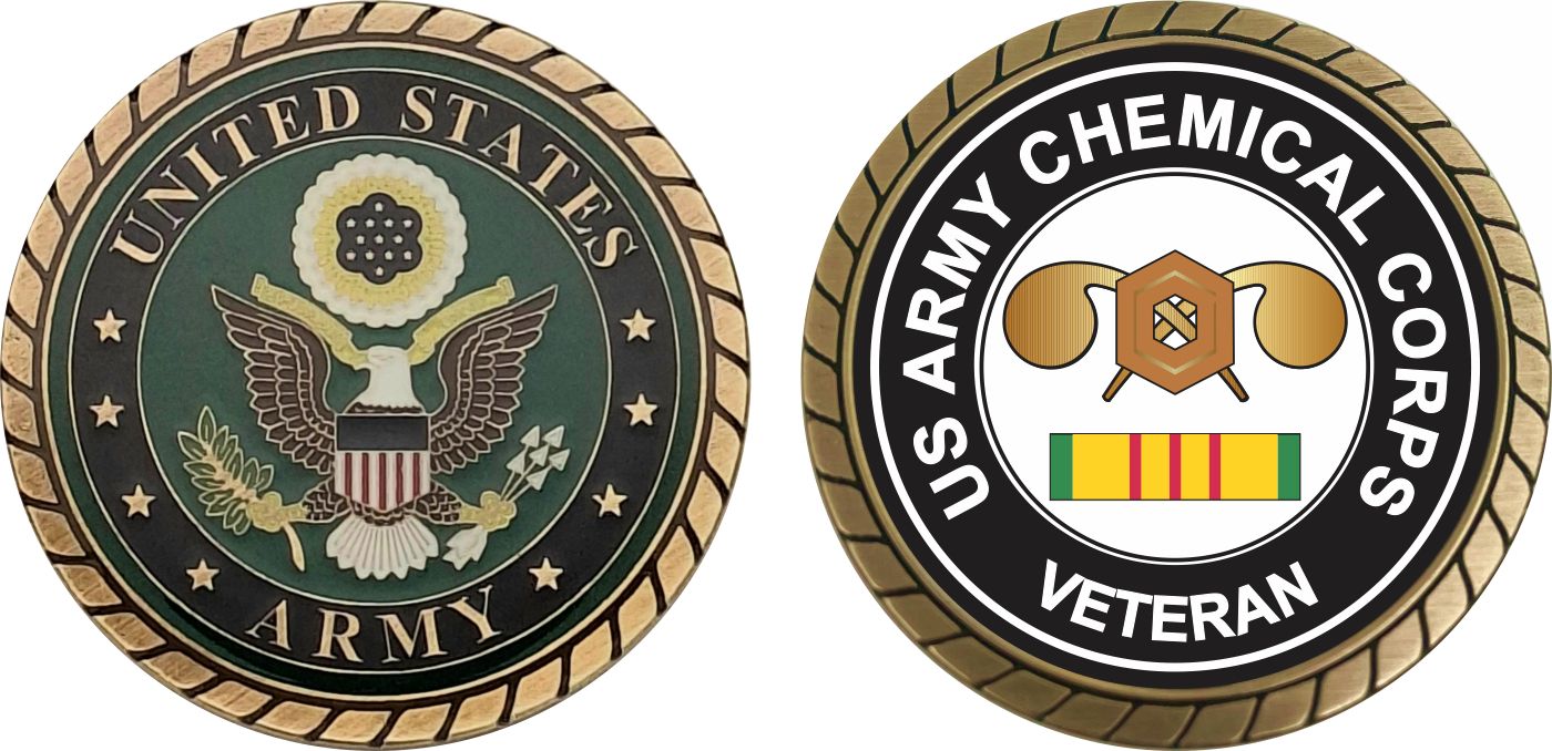 This 1 3/4” Army Chemical Corps Vietnam Veteran Challenge Coin is proudly offered by MilitaryBest. This Officially Licensed Army coin has beautiful enamel finish on one side and an organized crisp clean Army Chemical Corps Vietnam Veteran design on the opposite side.