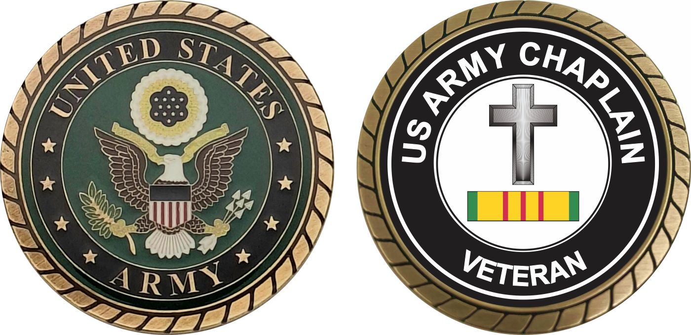 This 1 3/4” Army Christian Chaplain Corps Vietnam Veteran Challenge Coin is proudly offered by MilitaryBest. This Officially Licensed Army coin has beautiful enamel finish on one side and an organized crisp clean Army Christian Chaplain Corps Vietnam Veteran design on the opposite side.