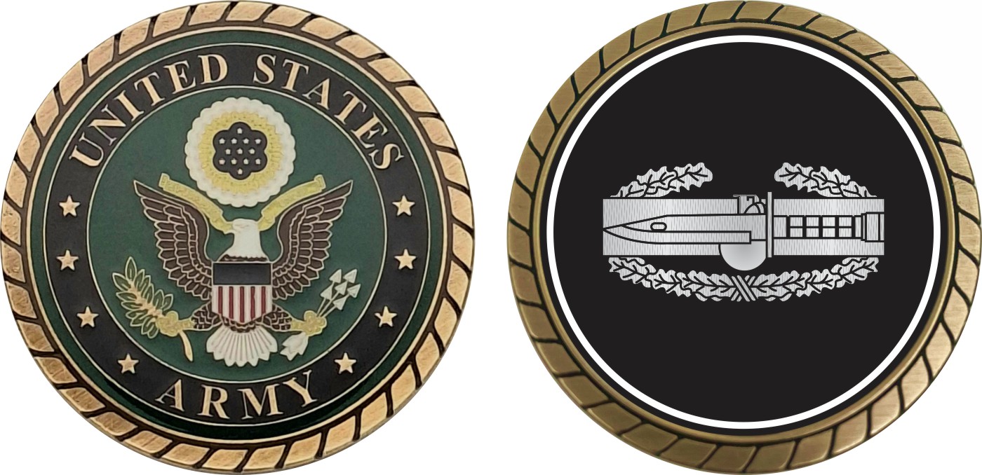 This 1 3/4” Army Combat Action Badge 1st Award Challenge Coin is proudly offered by Militarybest. This Officially Licensed Army coin has beautiful enamel finish on one side and an organized crisp clean design on the opposite side.