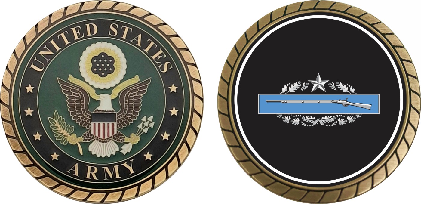 This 1 3/4” Army Combat Infantry Badge 2nd Award Challenge Coin is proudly offered by Militarybest. This Officially Licensed Army coin has beautiful enamel finish on one side and an organized crisp clean design on the opposite side.