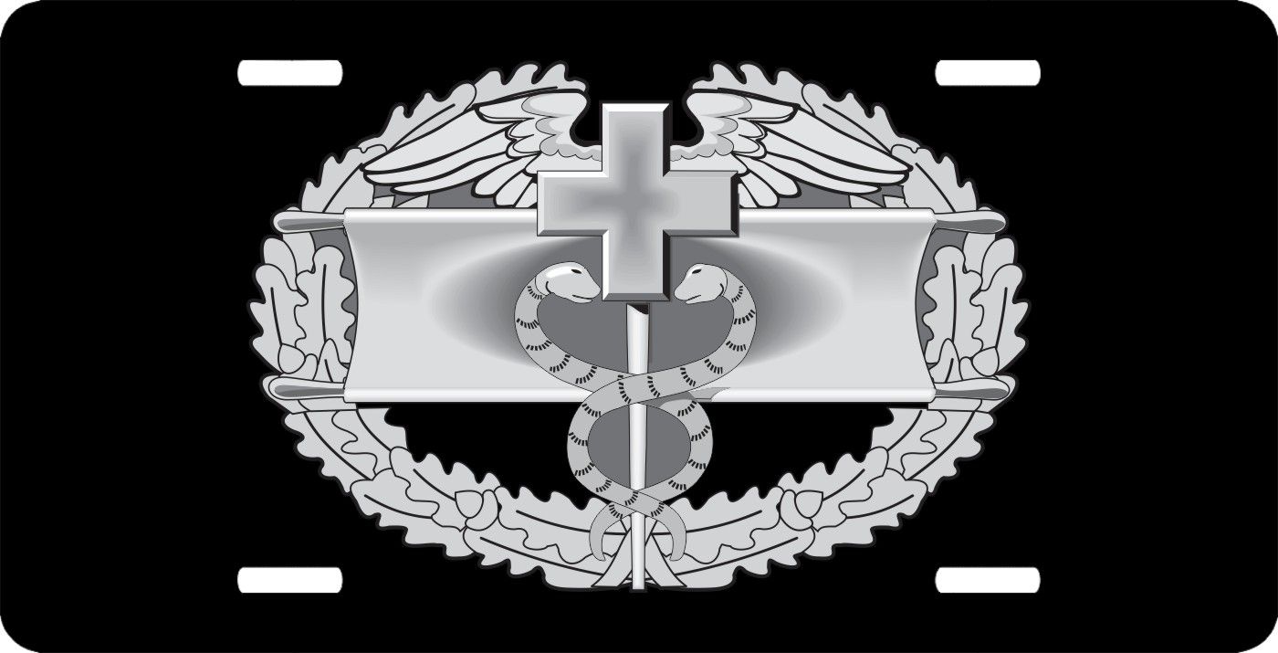 This Army Combat Medical First Award Badge License Plate is made from heavy gauge aluminum and has a baked enamel finish to last for many years of use. Each plate measures 5 15/16" x 11 15/16". This license plate would make a wonderful addition to your collection or a great gift.