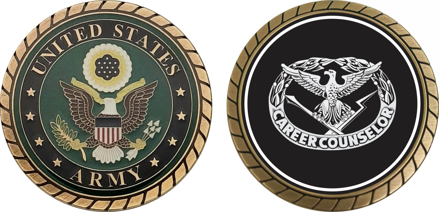 This 1 3/4” Army Counselor Badge Challenge Coin is proudly offered by Militarybest. This Officially Licensed Army coin has beautiful enamel finish on one side and an organized crisp clean design on the opposite side.