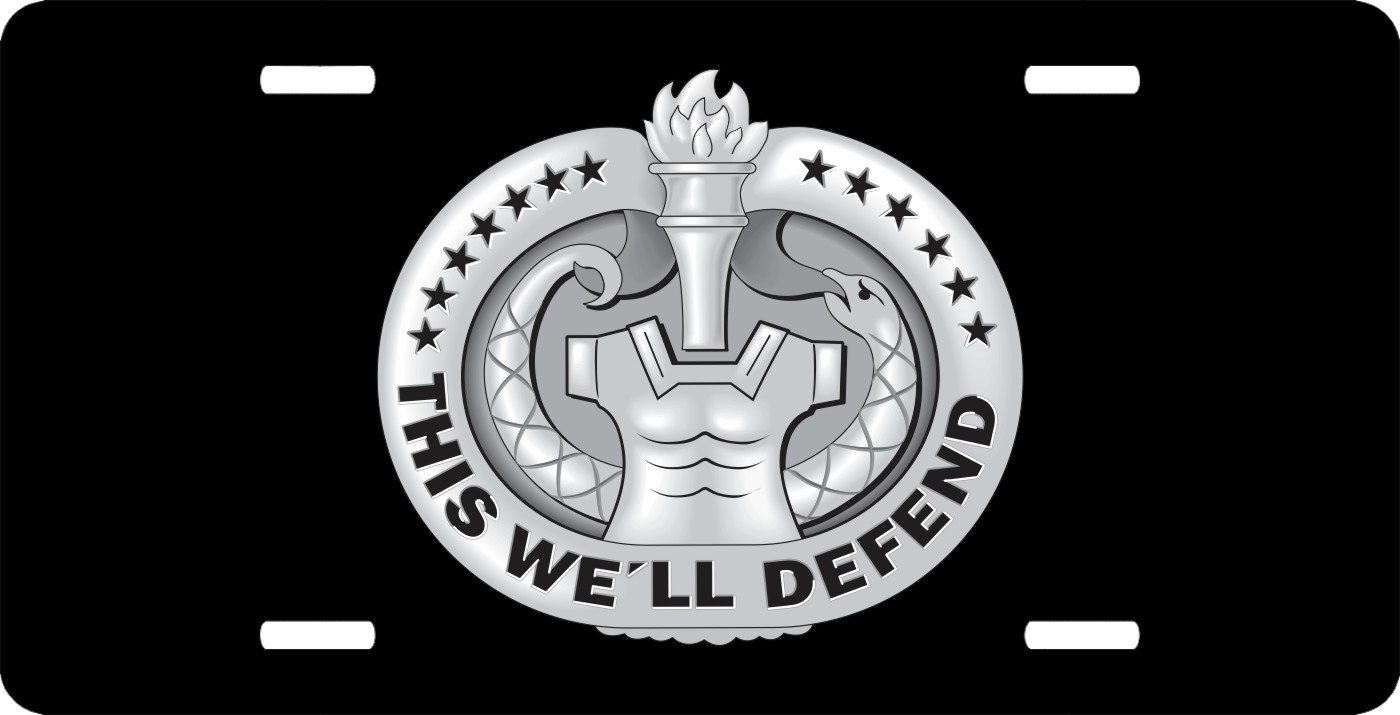This Army Drill Sergeant Badge (Gray) License Plate is made from heavy gauge aluminum and has a baked enamel finish to last for many years of use. Each plate measures 5 15/16" x 11 15/16". This license plate would make a wonderful addition to your collection or a great gift.