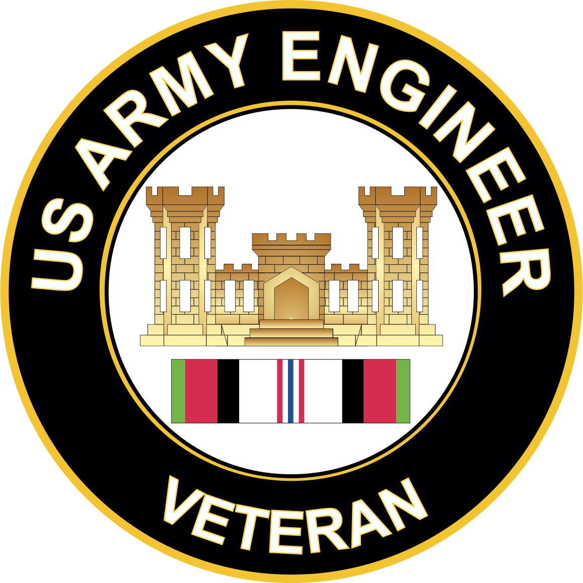 This Army Engineer Corps Afghanistan Decal is made in the USA at our facilities in Scottsboro, Alabama. Each Army Engineer Corps Afghanistan Decal is made using the finest ink and vinyl available and all are made for outside applications. We have been producing high quality Military Decals for over 10 years and we guarantee the quality of each one.Choose from several sizes, and click the 'ADD TO CART' button. For bulk pricing for custom and wholesale decals click here: Custom & Wholesale Decals!