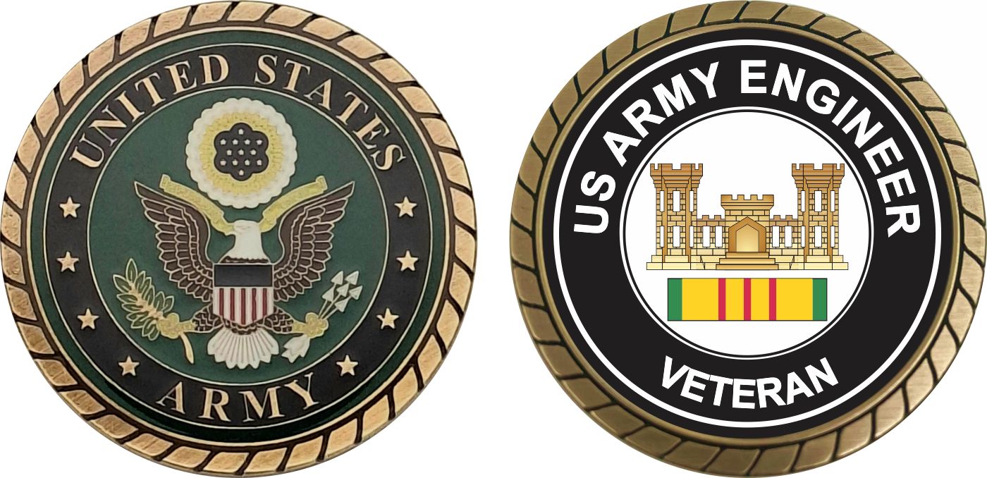 This 1 3/4” Army Engineer Vietnam Veteran Challenge Coin is proudly offered by MilitaryBest. This Officially Licensed Army coin has beautiful enamel finish on one side and an organized crisp clean Army Engineer Vietnam Veteran design on the opposite side.