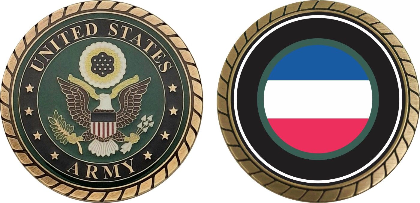 This 1 3/4” Army Forces Command Patch Challenge Coin is proudly offered by Militarybest. This Officially Licensed Army coin has beautiful enamel finish on one side and an organized crisp clean design on the opposite side.