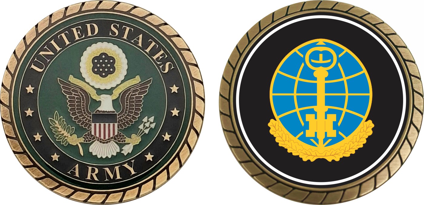 This 1 3/4” Army Intelligence and Security Command Unit Crest Challenge Coin is proudly offered by Militarybest. This Officially Licensed Army coin has beautiful enamel finish on one side and an organized crisp clean design on the opposite side.