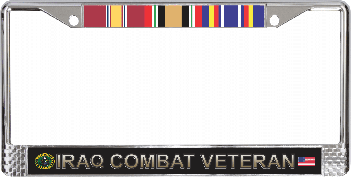 This U.S. Army Iraq Combat Veteran 3-Ribbon Stack License Plate Frame is proudly produced in our facility in Scottsboro, Alabama. Each Chrome Dipped Alloy Frame has Poly Coated Aluminum Inserts which allow our production team to provide you with High Quality Designs. Each design is Sublimation Printed individually, and the end product provides a high gloss appearance of the design. Our Military License Plate Frames' quality are guaranteed.A percentage of the sale of each MilitaryBest item is forwarded to the licensing departments of each respective branch of service in support of the MWR (Morale, Welfare, & Recreation) program. These payments are made by either ALL4U LLC or the wholesaler from where the item originated. Our team thanks you for your service and your support of these programs.