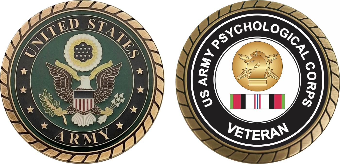 This 1 3/4” Army Psychological Corps Afghanistan Challenge Coin is proudly offered by MilitaryBest. This Officially Licensed Army coin has beautiful enamel finish on one side and an organized crisp clean Army Psychological Corps Afghanistan design on the opposite side.