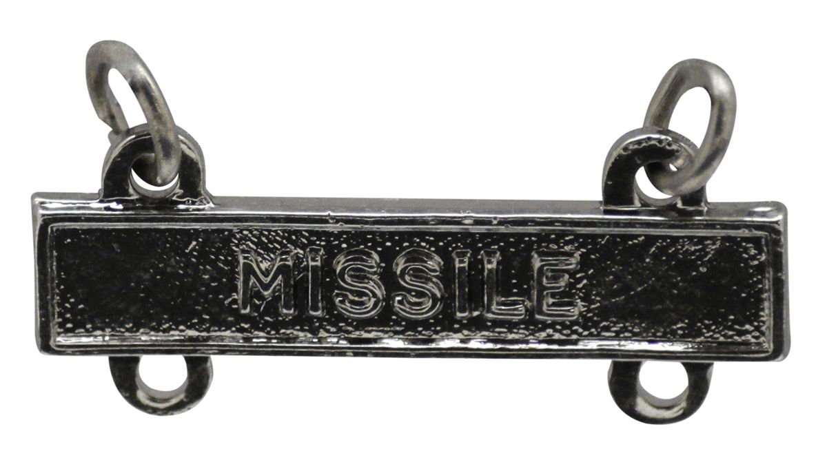 MilitaryBest is proud to offer this regulation Army Qualification Bar Missile - Oxidized Finish. It is the same badge that is supplied to the U.S. Military. All MilitaryBest's Regulation Full Size Badges are of the highest quality available. We are proud to offer these badges in our product offerings. By ordering this badge you are confirming that it has been earned.