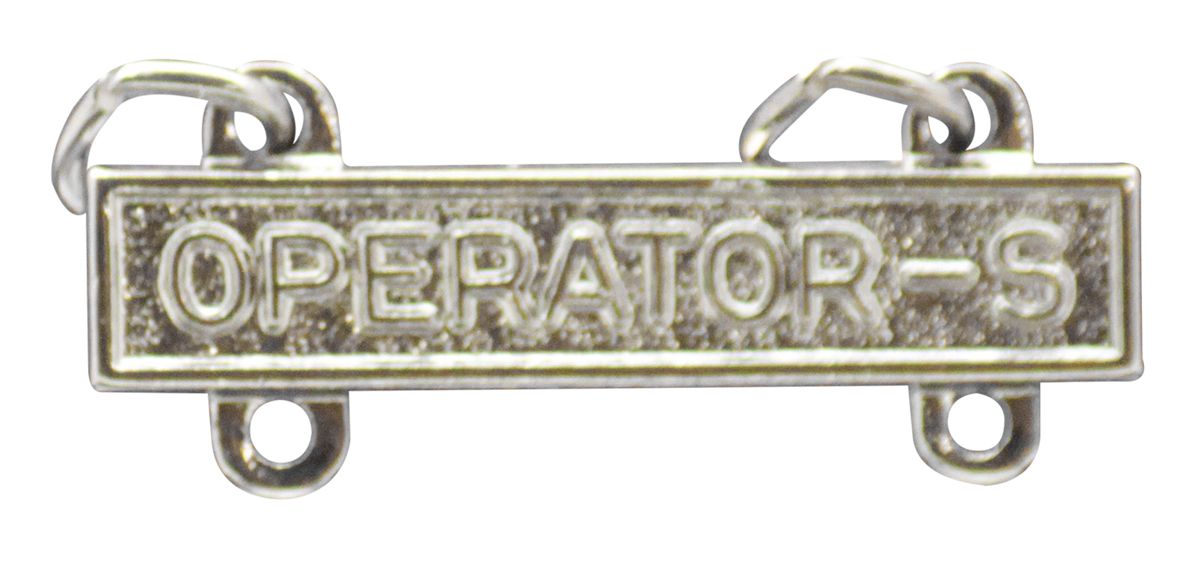 MilitaryBest is proud to offer this regulation Army Qualification Bar Operator S - Oxidized Finish. It is the same badge that is supplied to the U.S. Military. All MilitaryBest's Regulation Full Size Badges are of the highest quality available. We are proud to offer these badges in our product offerings. By ordering this badge you are confirming that it has been earned.