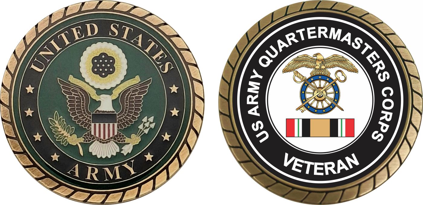 This 1 3/4” Army Quartermaster Corps Iraq Veteran Challenge Coin is proudly offered by MilitaryBest. This Officially Licensed Army coin has beautiful enamel finish on one side and an organized crisp clean Army Quartermaster Corps Iraq Veteran design on the opposite side.
