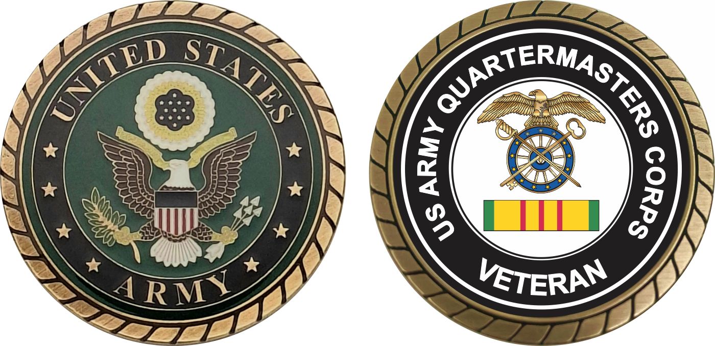 This 1 3/4” Army Quartermaster Corps Vietnam Veteran Challenge Coin is proudly offered by MilitaryBest. This Officially Licensed Army coin has beautiful enamel finish on one side and an organized crisp clean Army Quartermaster Corps Vietnam Veteran design on the opposite side.