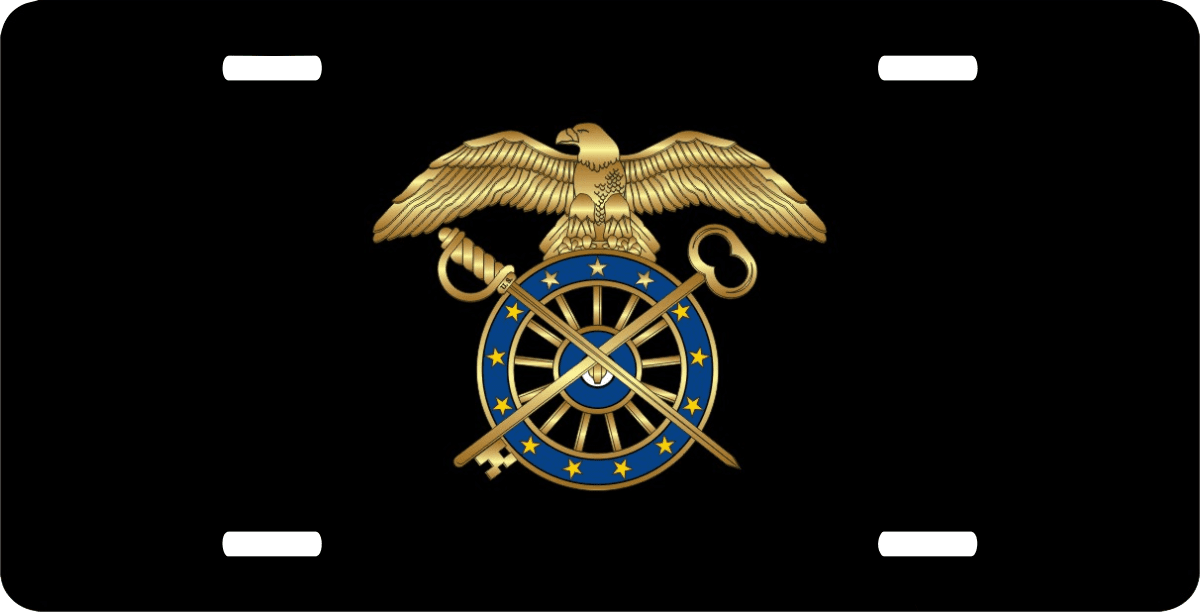 This Army Quartermaster Corps License Plate is made from heavy gauge aluminum and has a baked enamel finish to last for many years of use. Each plate measures 5 15/16" x 11 15/16". This license plate would make a wonderful addition to your collection or a great gift.
