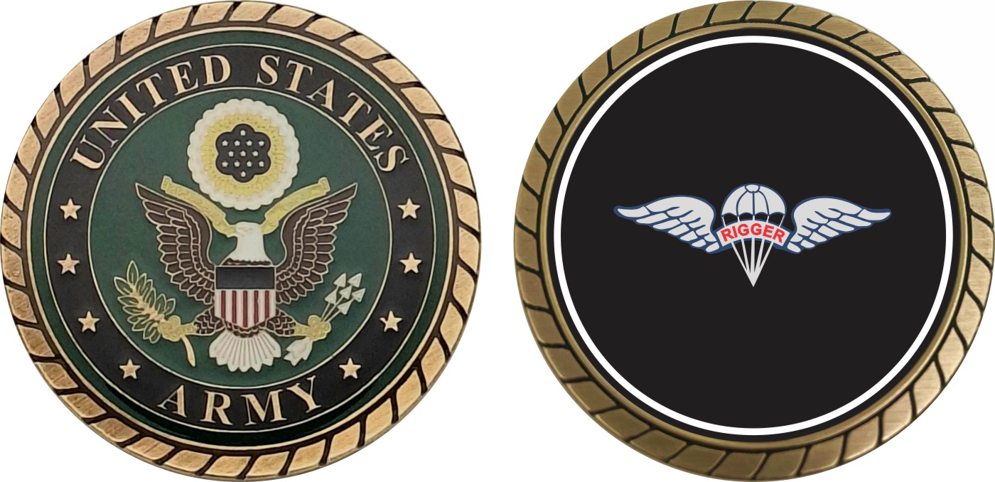 This 1 3/4” Army Rigger Wings Challenge Coin is proudly offered by Militarybest. This Officially Licensed Army coin has beautiful enamel finish on one side and an organized crisp clean design on the opposite side.
