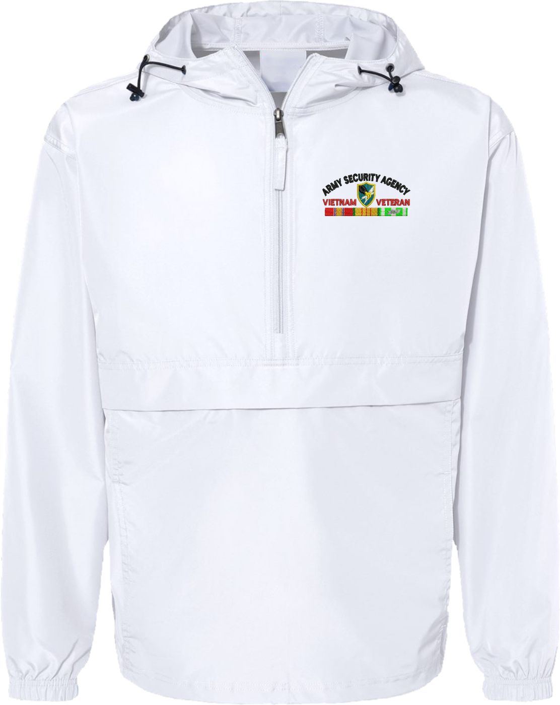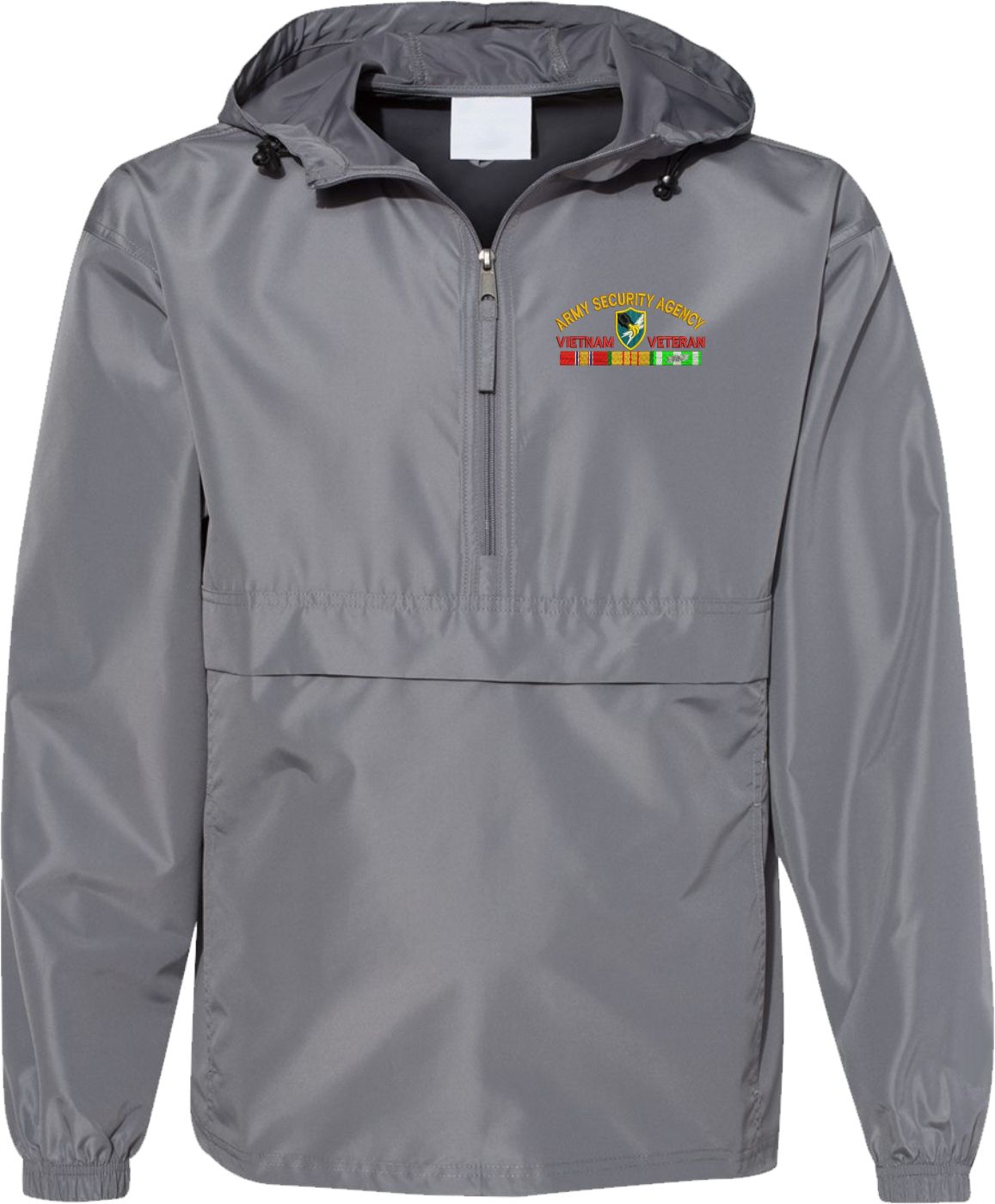 MilitaryBest is proud to offer this quality Army Security Agency Vietnam Veteran with Ribbons Hooded Windbreaker. Also known as an Anorak Jacket, this windbreaker is designed to keep wind and water out. With a design embroidered over the left chest, this windbreaker is embroidered to order at our facilities in Scottsboro, AL.. This windbreaker can be packed into the mesh lined pouch pocket for a more portable method of storage.- 100% Polyester
