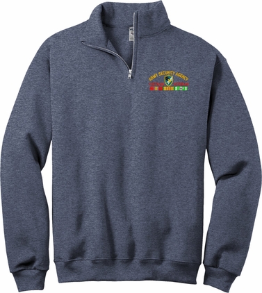 MilitaryBest is proud to offer this Army Security Agency Vietnam Veteran with Ribbons Embroidered Quarter-Zip Pullover. This quality shirt is embroidered by our MilitaryBest team in Northeast Alabama.PRODUCT FEATURES