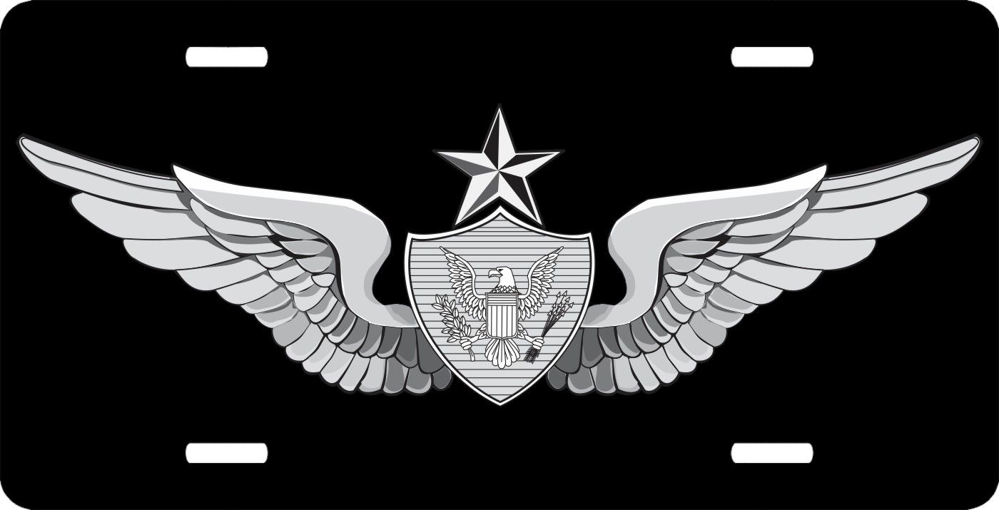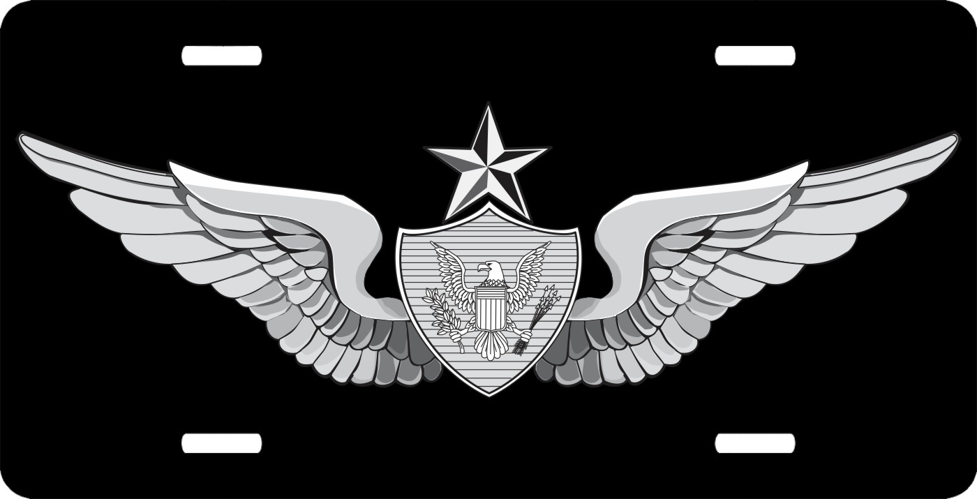 This Army Senior Aircrew Wings License Plate is made from heavy gauge aluminum and has a baked enamel finish to last for many years of use. Each plate measures 5 15/16" x 11 15/16". This license plate would make a wonderful addition to your collection or a great gift.