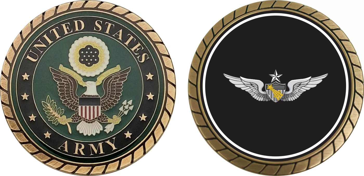 This 1 3/4” Army Senior Astronaut Wings Challenge Coin is proudly offered by Militarybest. This Officially Licensed Army coin has beautiful enamel finish on one side and an organized crisp clean design on the opposite side.