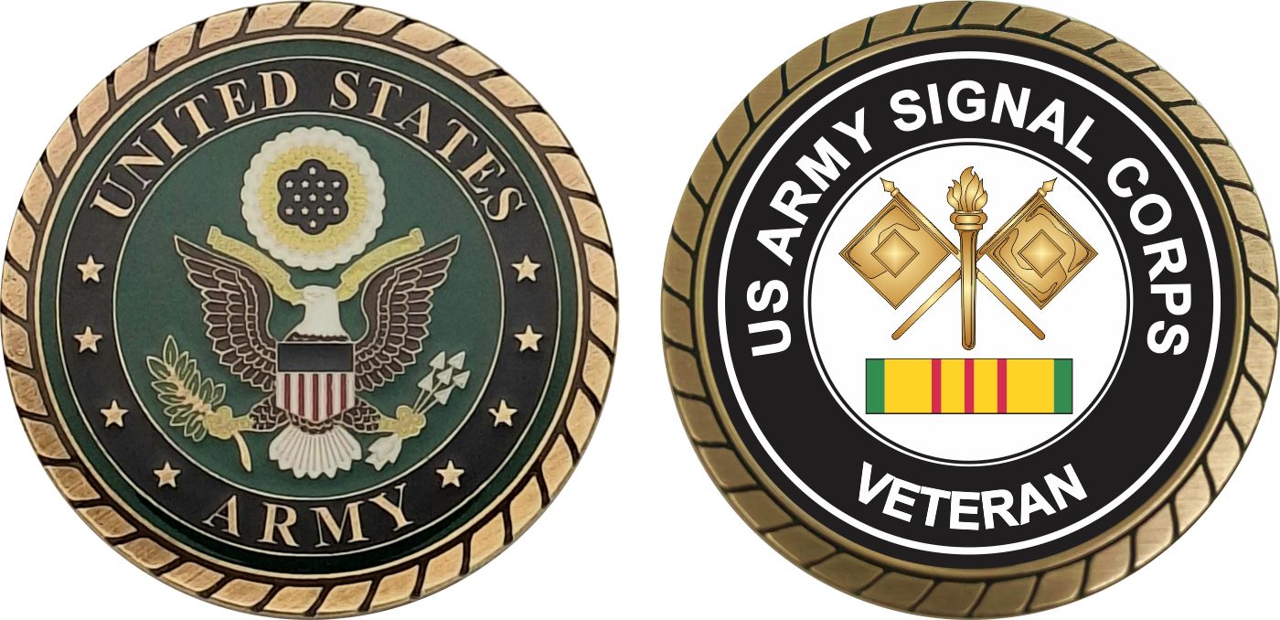 This 1 3/4” Army Signal Corps Vietnam Veteran Challenge Coin is proudly offered by MilitaryBest. This Officially Licensed Army coin has beautiful enamel finish on one side and an organized crisp clean Army Signal Corps Vietnam Veteran design on the opposite side.