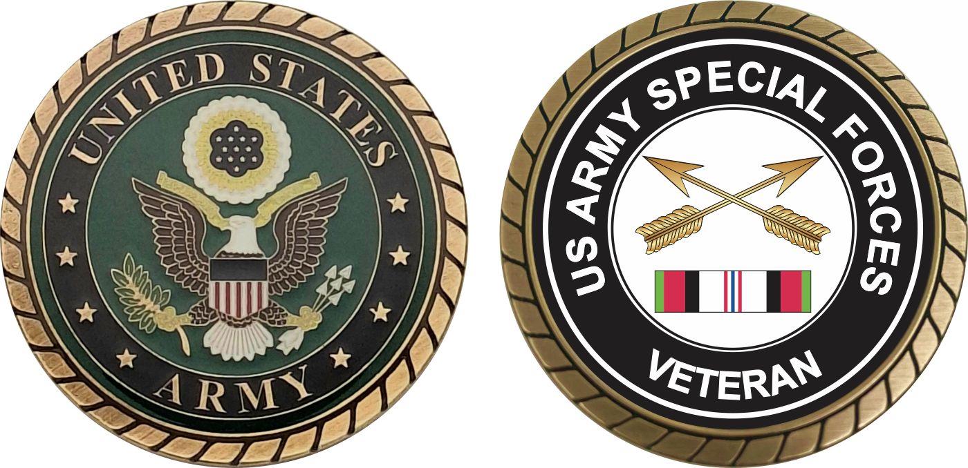 This 1 3/4” Army Special Forces Afghanistan Challenge Coin is proudly offered by MilitaryBest. This Officially Licensed Army coin has beautiful enamel finish on one side and an organized crisp clean Army Special Forces Afghanistan design on the opposite side.
