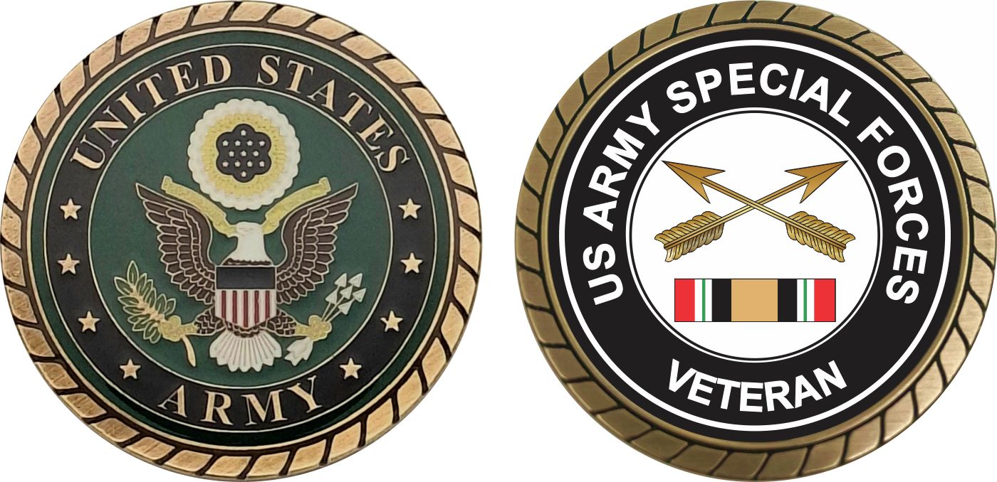 This 1 3/4” Army Special Forces Iraq Veteran Challenge Coin is proudly offered by MilitaryBest. This Officially Licensed Army coin has beautiful enamel finish on one side and an organized crisp clean Army Special Forces Iraq Veteran design on the opposite side.