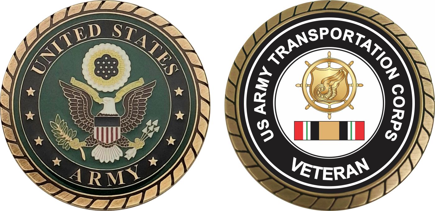 This 1 3/4” Army Transportation Iraq Veteran Challenge Coin is proudly offered by MilitaryBest. This Officially Licensed Army coin has beautiful enamel finish on one side and an organized crisp clean Army Transportation Iraq Veteran design on the opposite side.
