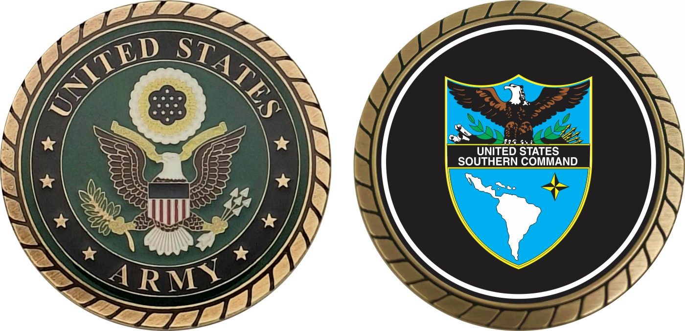 This 1 3/4” Army USSOCOM Patch Challenge Coin is proudly offered by Militarybest. This Officially Licensed Army coin has beautiful enamel finish on one side and an organized crisp clean design on the opposite side.