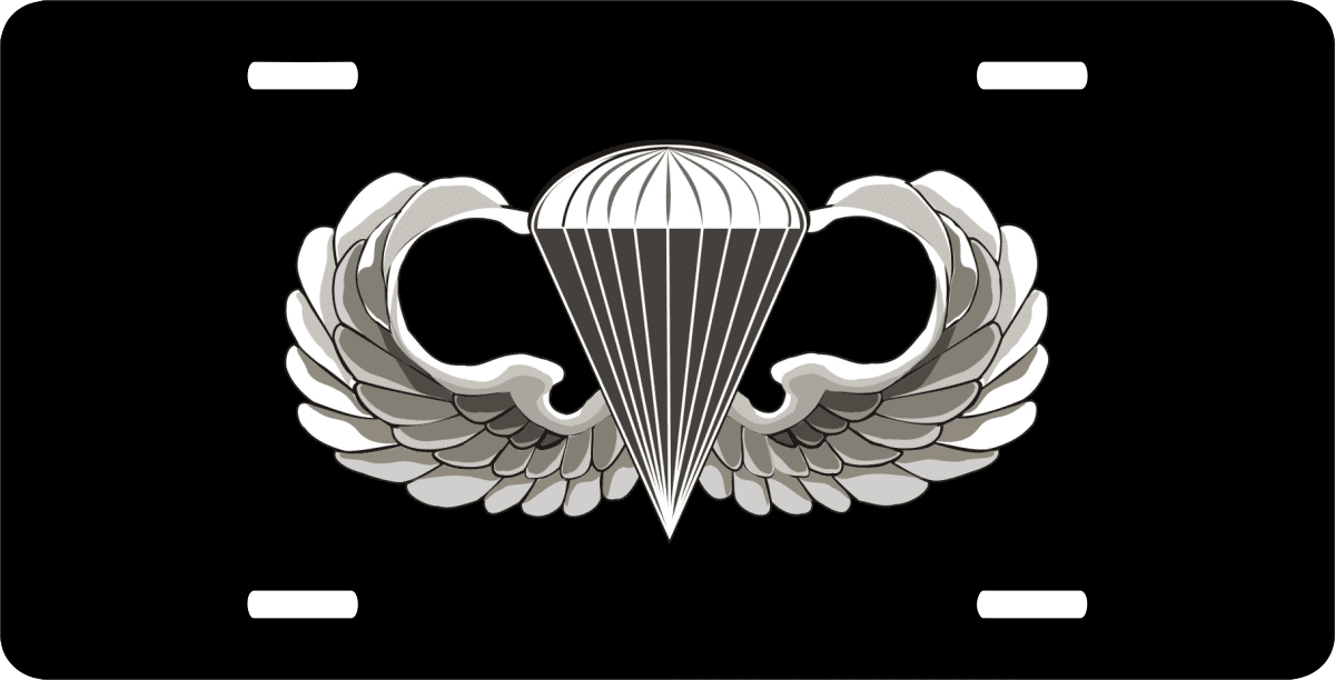 This Army Parachutist License Plate is made from heavy gauge aluminum and has a baked enamel finish to last for many years of use. Each plate measures 5 15/16" x 11 15/16". This license plate would make a wonderful addition to your collection or a great gift.