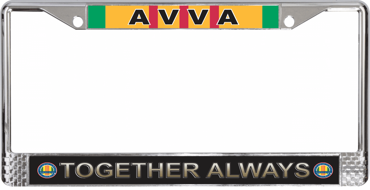 This AVVA License Plate Frame is proudly produced in our facility in Scottsboro, Alabama. Each Chrome Dipped Alloy Frame has Poly Coated Aluminum Inserts which allow our production team to provide you with High Quality Designs. Each design is Sublimation Printed individually, and the end product provides a high gloss appearance of the design. Our Military License Plate Frames' quality are guaranteed. Custom Frames are non-returnable unless there is a defect with the frame or design.A percentage of the sale of each MilitaryBest item is forwarded to the licensing departments of each respective branch of service in support of the MWR (Morale, Welfare, & Recreation) program. These payments are made by either ALL4U LLC or the wholesaler from where the item originated. Our team thanks you for your service and your support of these programs.