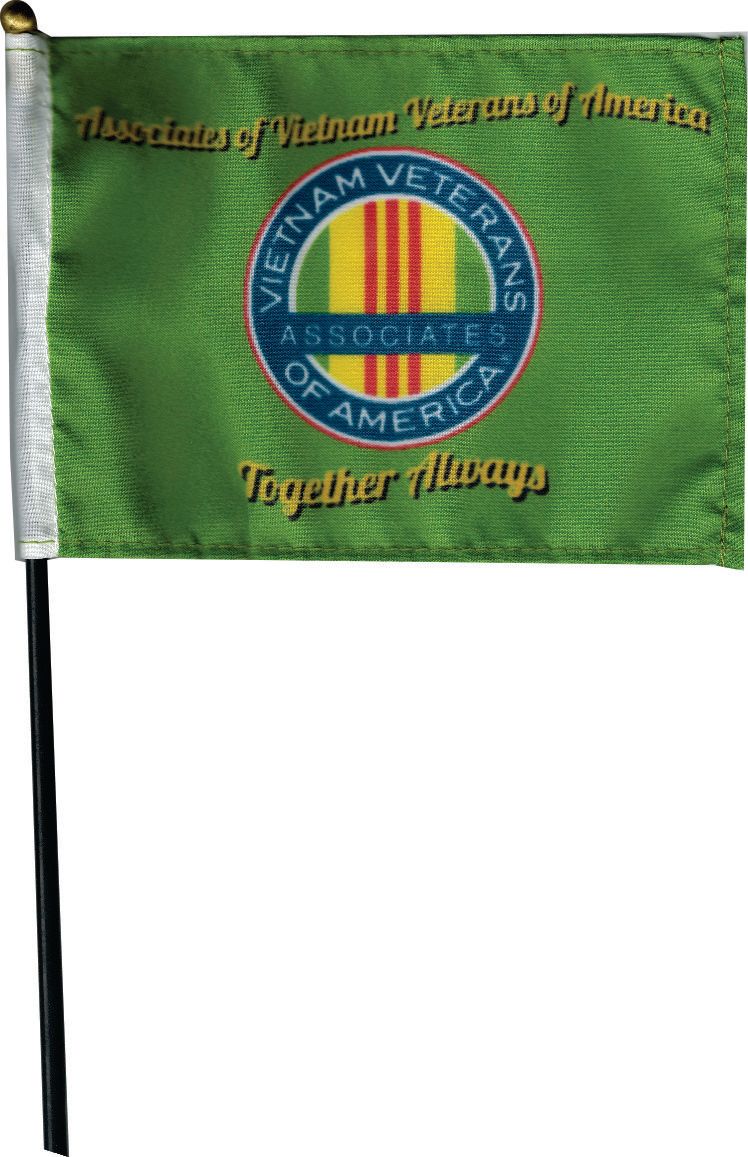 This AVVA Mini Flag Stick is offered by MilitaryBest for purchase. Each is sublimation printed single sided and proudly made in the USA. Each Flag is sold separately from the flag stand which is available as an add on option. Discounts are also shown in the options menu above. Each flag measures 4x6 inches and is attached to a black stick. Colors shown on this picture are a representation of each flag and variations in actual colors may vary slightly.Thanks to all of our veterans and those that support them!